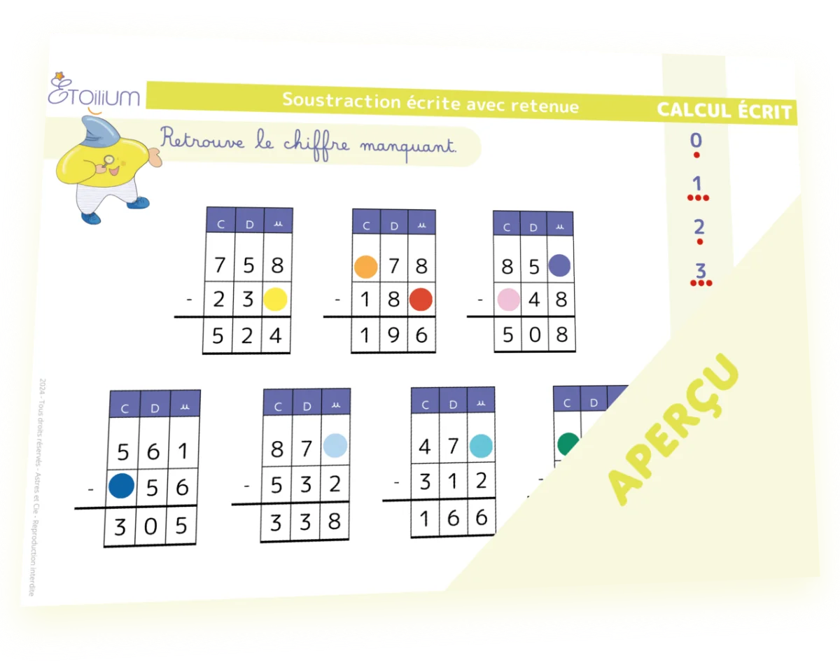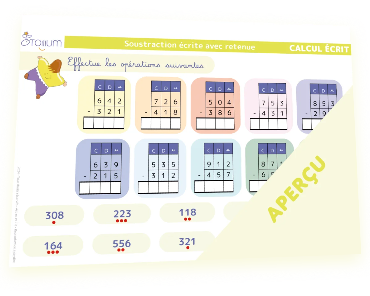 Accueil / Boutique / Soustraction avec retenue